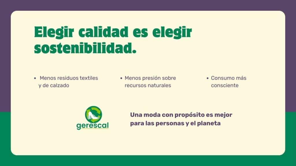 Las prendas duraderas soportan múltiples ciclos de uso, reducen la presión sobre los recursos naturales y disminuyen el desperdicio textil y de calzado, objetivo central de GERESCAL.