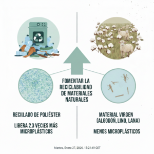 El poliéster reciclado puede liberar hasta 2,3 veces más microplásticos que el poliéster virgen durante su uso y lavado, lo que demuestra que reciclar sin calidad no es una solución real